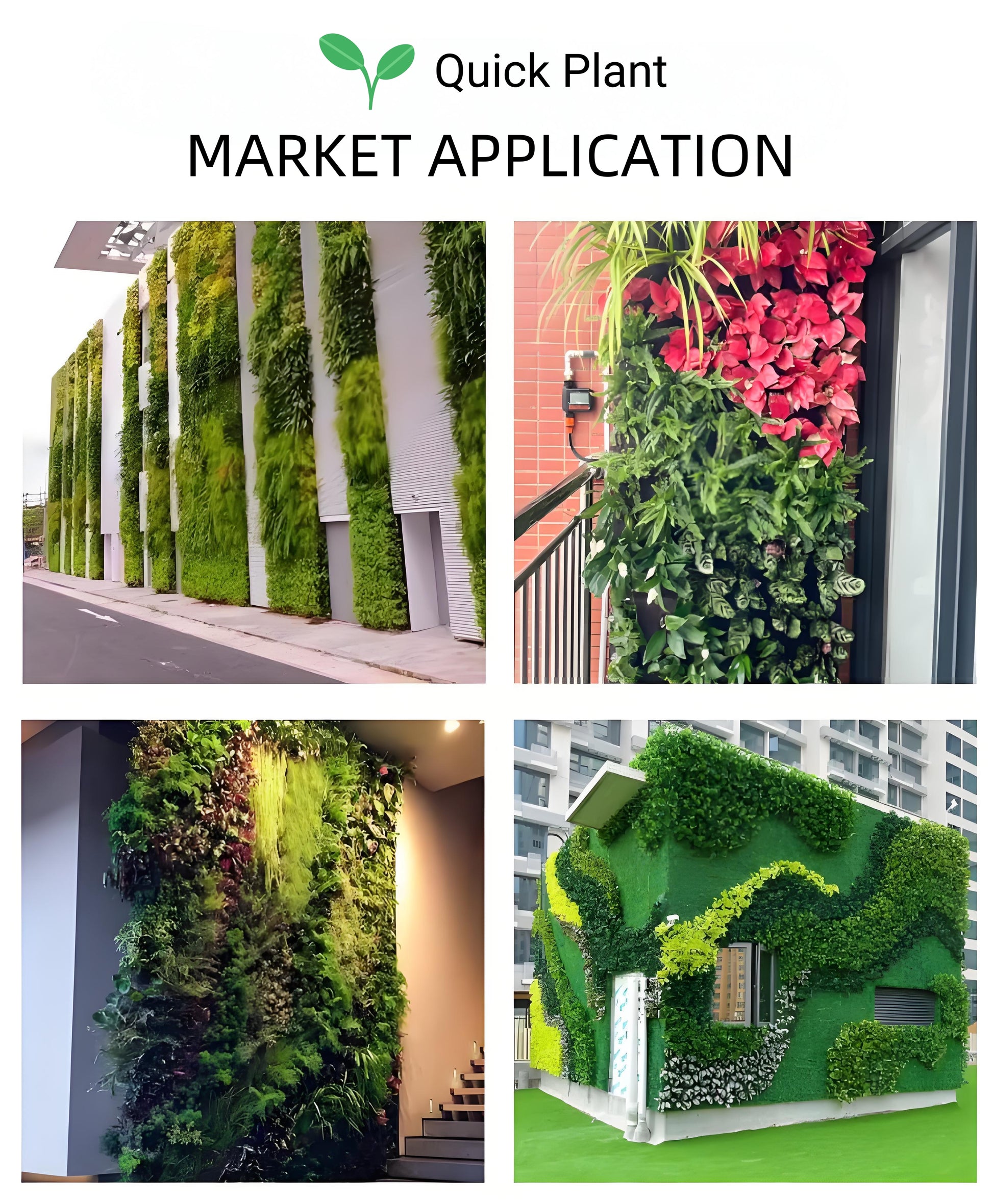 Market application: vertical greening projects such as plant walls, slope protection greening, curved surface greening, plant landscape sculptures, etc.